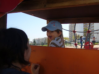 ...foi há umas semanas, no BES, onde ele quis não sei o quê e como não lhe dei, deitou-se no chão a chorar. Ups! Deu-me para rir porque foi a primeira e porque teve a sua piada ver um fedelho daqueles a tentar impor a sua vontade. Agora, quando lhe dá forte, faz isso. Manda-se para o chão a chorar muito ou coloca-se de cócoras e dobra-se ao meio a chorar/berrar. Está na fase da afirmação, de testar até onde pode ir. Já não me rio. Deixo chorar e explico-lhe (pelo menos, tento) o que se passa, a razão da recusa. No outro dia, viu o meu estojo na minha pasta que estava aberta e deitou-se no chão a chorar. Estávamos a atravessar a estrada e só dei por mim a levantá-lo por um braço (sujeito a deslocar-lhe qualquer coisa) a levá-lo para o passeio. Percebi o olhar dos outros, o mesmo olhar que tinha antes de ter filhos, que dizia qualquer coisa entre "não tem mão nele!" e "que triste mãe!"